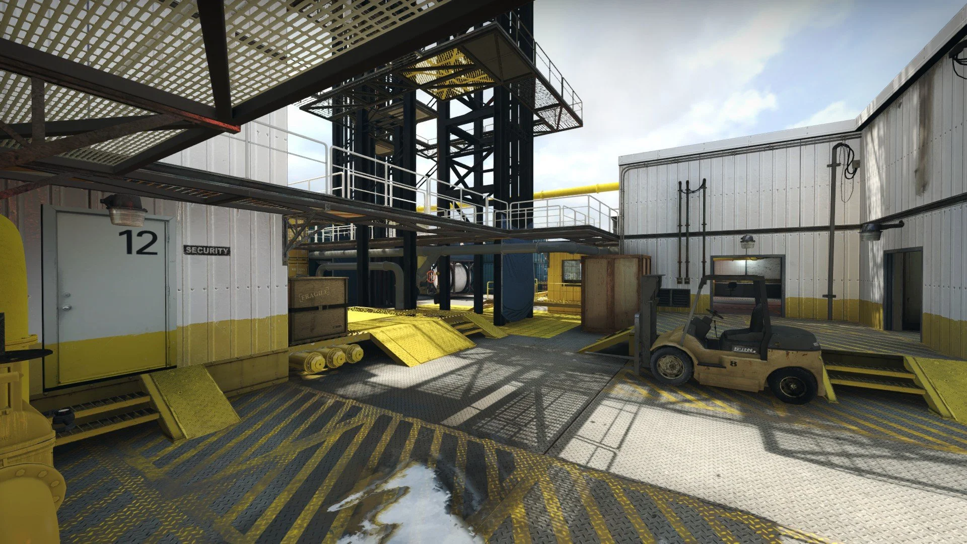 Taking place on an offshore Oilrig, Blackgold was designed and intended for casual fast pace play, specifically deathmatch. Blackgold features a layout with sprawling verticality, married by tight CQC spaces and contrasting long sight-lines.